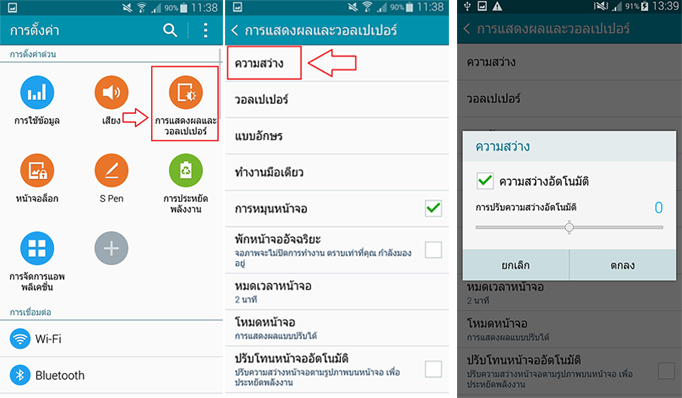 ไปที่เมนูตั้งค่า > เลือกต่อไปยัง การแสดงผลและวอลเปเปอร์ > เข้าที่เมนูความสว่าง > ปรับความสว่างของหน้าจอแสดงผลได้ตามความเหมาะสม