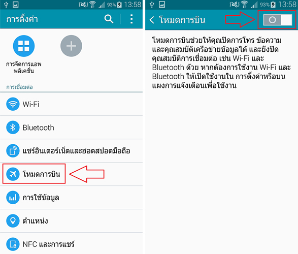ไปที่เมนูตั้งค่า > เลือกที่ โหมดการบิน > จัดการปิด-ปิดโหมดการบินตามต้องการ